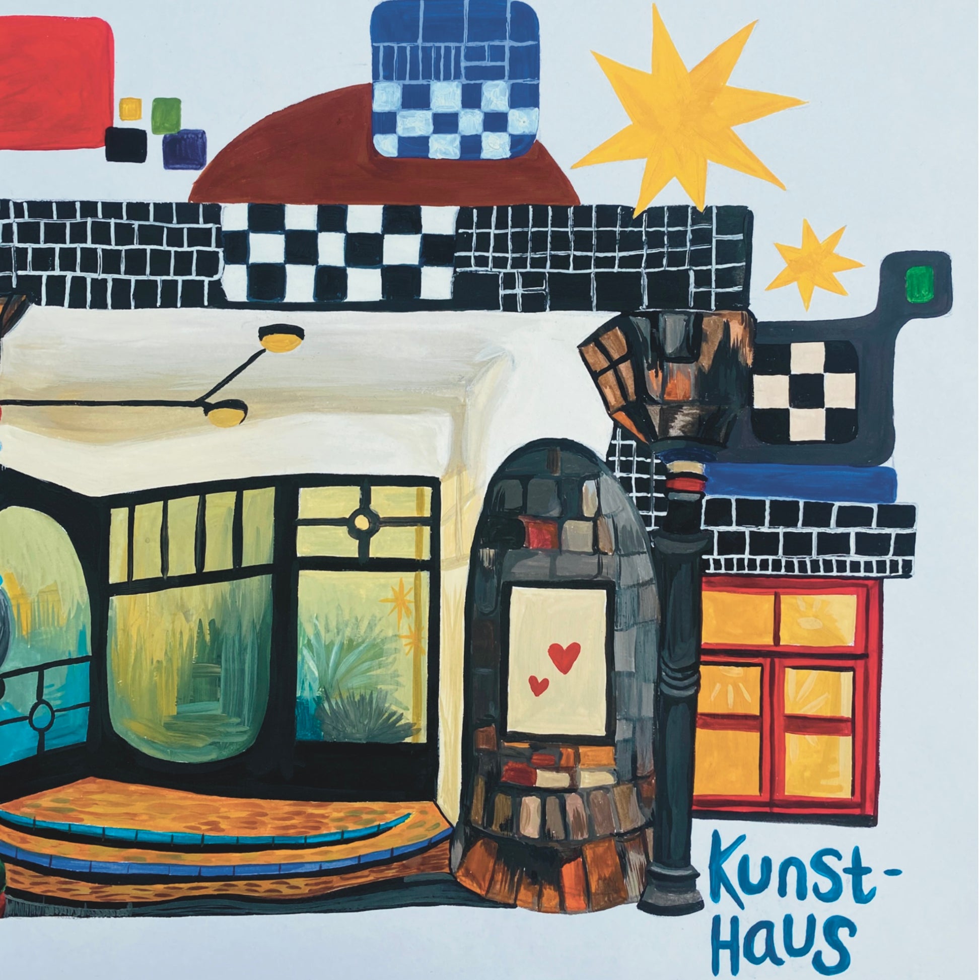 This is an A4 print of my original painting of the Kunst Haus Wien - Hundertwasser Museum in Vienna, one of the most inspiring buildings I’ve ever seen. I was drawn to its bold colors, quirky shapes, and the way nature seems to weave into the architecture. I tried to capture this unique energy and playfulness in my painting.